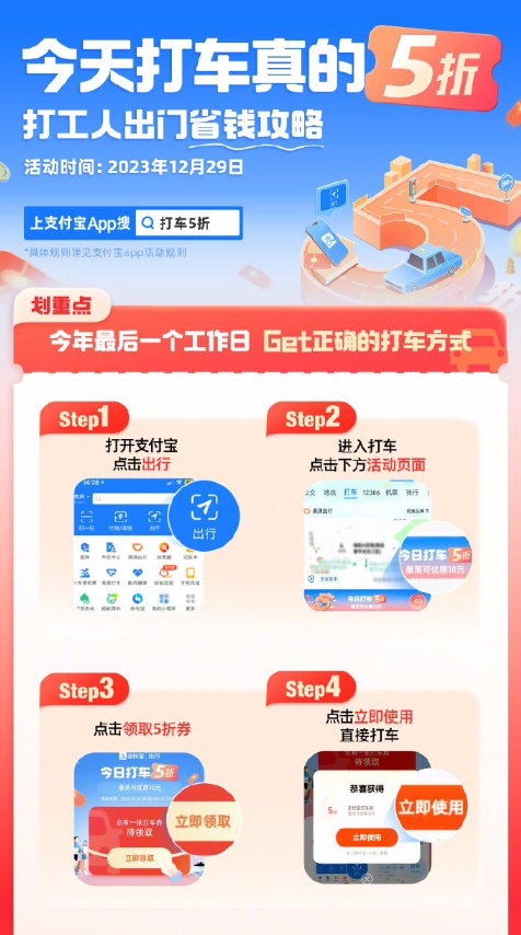 2023 最后一個(gè)工作日,支付寶推出“打車(chē) 5 折”活動(dòng)
