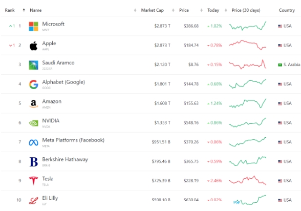 微軟正式超越蘋(píng)果 成為全球市值最高的公司 09:35:49