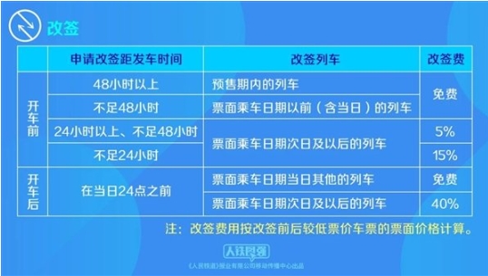 根據中國鐵路官方介紹,鐵路部門(mén)今日起開(kāi)始啟用全新優(yōu)化的車(chē)票改簽規則,擴大車(chē)票改簽范圍。