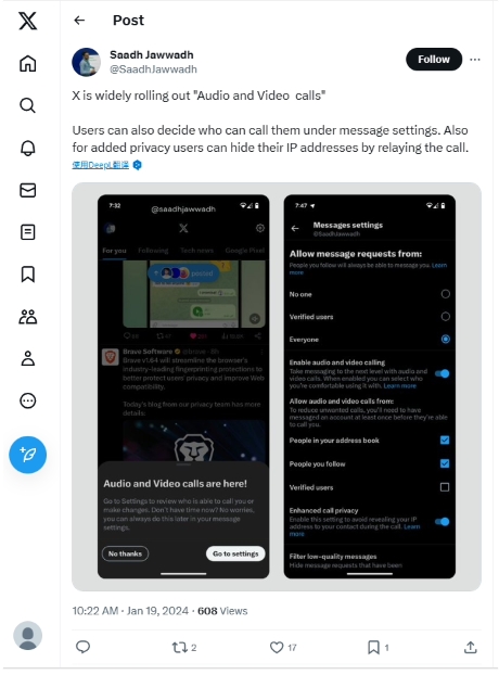 X(推特)安卓版 App 上線(xiàn)音視頻通話(huà):訂閱用戶(hù)才能撥打,但接聽(tīng)免費