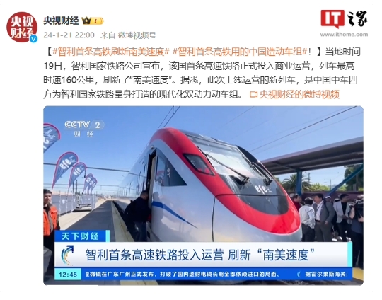 “中國造”動(dòng)車(chē)組在智利投入運營(yíng),刷新南美速度
