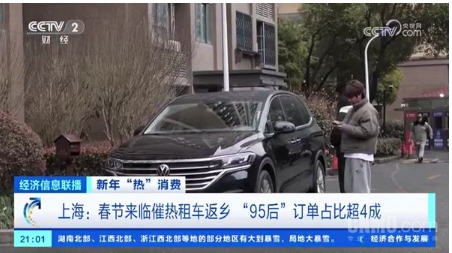 有數據顯示,今年春節,租車(chē)訂單量相比去年同期增加2倍以上,其中,新能源車(chē)輛預訂同比增長(cháng)5倍;95后的租車(chē)訂單占比超四成,同比增加80%;僅上海地區,租車(chē)預訂量已增長(cháng)近300%。這可能與上海作為國際大都市,人口流動(dòng)性大,以及年輕人口比例較高有關(guān)。
