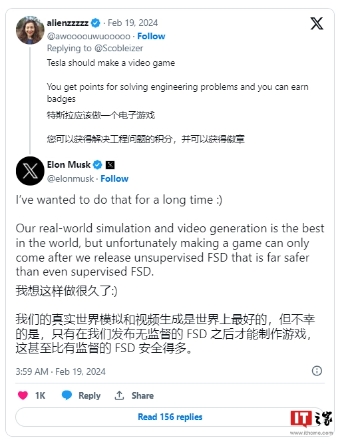 馬斯克回復了一條建議特斯拉制作視頻游戲的評論,稱(chēng)自己也一直想要做這件事。但他同時(shí)也表示,他認為特斯拉的“真實(shí)世界模擬和視頻生成是全球最佳”,并補充說(shuō),公司必須等到向公眾推出完全無(wú)人駕駛 (FSD) 后才能制作游戲。