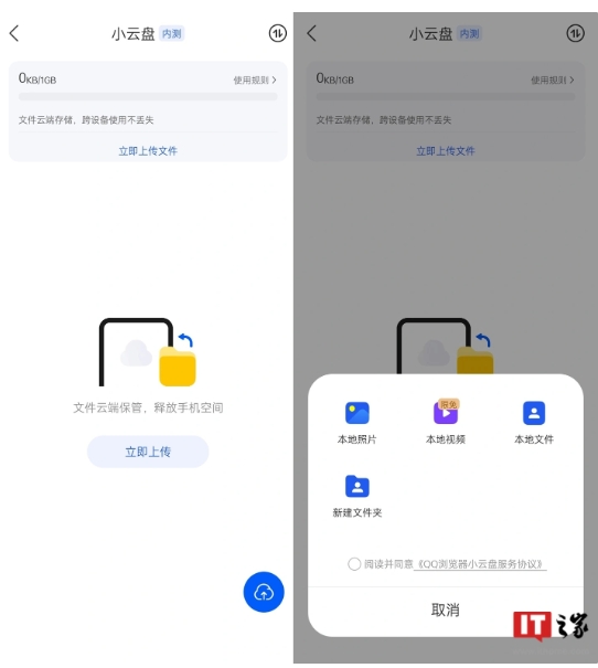 QQ 瀏覽器內測“小云盤(pán)”功能,默認提供 1GB 免費空間
