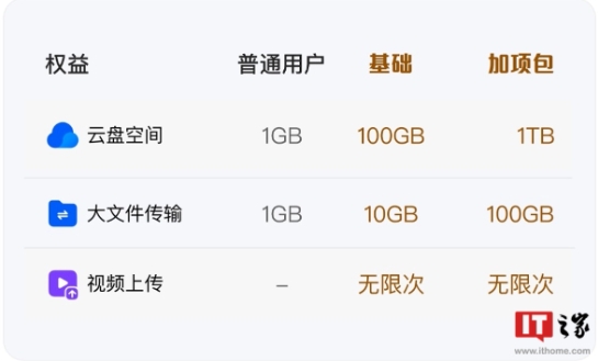 用戶(hù)開(kāi)通工具權益卡后可獲得相應的小云盤(pán)使用權益,包括云空間(基礎套餐 100G、云盤(pán)加項包 1TB)、大文件傳輸權益(基礎套餐可上傳不超過(guò) 10GB 的文件、云盤(pán)加項包可上傳不超過(guò) 100GB 的文件)等。此外,小云盤(pán)雖然支持上傳視頻,但屬于付費用戶(hù)專(zhuān)享權益,目前僅提供限免體驗。