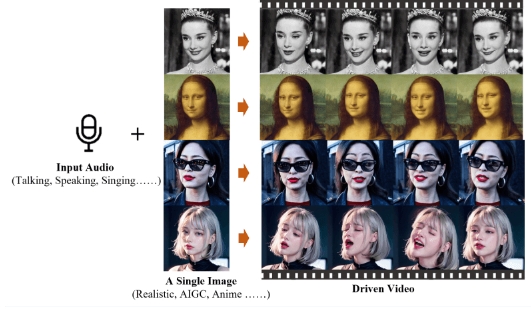 音頻驅動(dòng)的視頻生成:EMO 能夠根據輸入的音頻(如說(shuō)話(huà)或唱歌)直接生成視頻,無(wú)需依賴(lài)于預先錄制的視頻片段或 3D 面部模型。