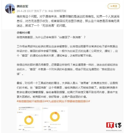 騰訊公關(guān)總監回應微信消息撤回有提示:保障送達的準確性