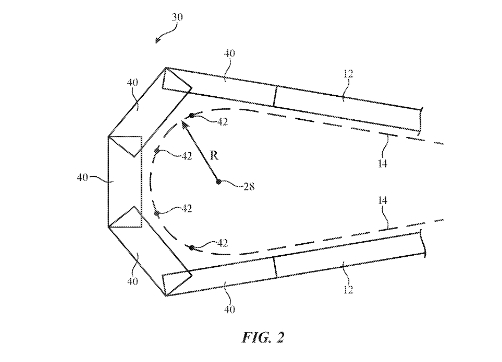 圖 2 中使用多個(gè) #40 鉸鏈連接,然后彼此耦合以旋轉運動(dòng),讓外殼#12 的第一部分和第二部分之間串聯(lián)延伸,不過(guò)專(zhuān)利圖來(lái)看相鄰鉸鏈連桿的整體旋轉量可能會(huì )受到限制。