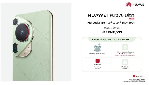 華為 Pura 70 Ultra(16+512GB 版本):6599 林吉特(當前約 10030 元人民幣),預購同樣可享價(jià)值 2376 林吉特的禮品。