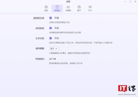 小微助手支持剪貼板設置,可記錄剪貼板內容,支持自動(dòng)粘貼、圖片文字識別等功能,支持數據保存期限時(shí)間自定義和存儲空間占用顯示。