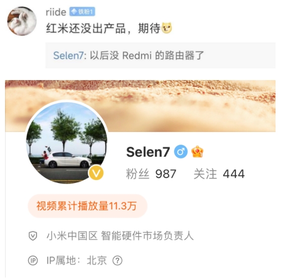在博主 @Kang 的評論區里,認證為小米中國區智能硬件市場(chǎng)負責人 @Selen7 回復網(wǎng)友評論稱(chēng),以后沒(méi) Redmi 品牌的路由器了。