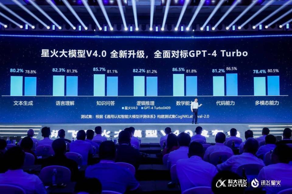 6月27日,科大訊飛發(fā)布訊飛星火大模型V4.0,并宣布整體超越GPT-4 Turbo,在8個(gè)主流測試集中排名第一。