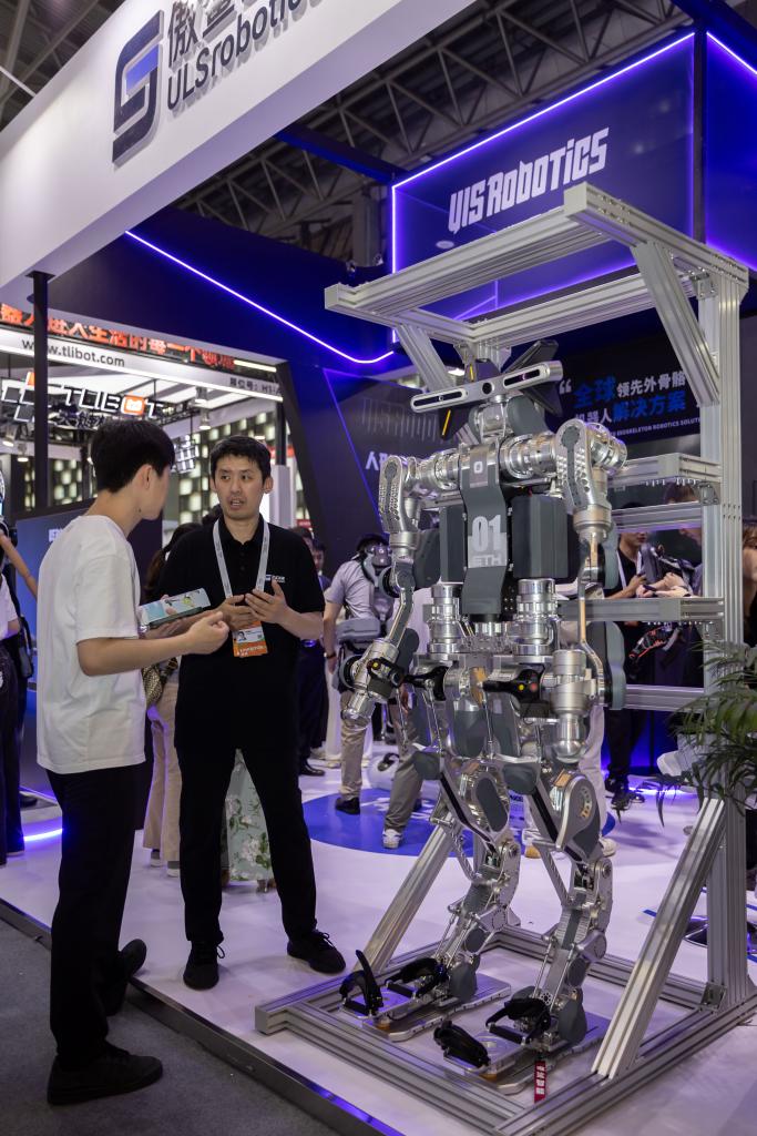 “這臺人形機器人可實(shí)現人形與外骨骼雙模式工作,結合力控與感知能力、大模型人工智能訓練,完成在礦山、電力、應急等野外復雜環(huán)境中的作業(yè)、任務(wù)等。”上海傲鯊智能公司市場(chǎng)總監張華說(shuō)。