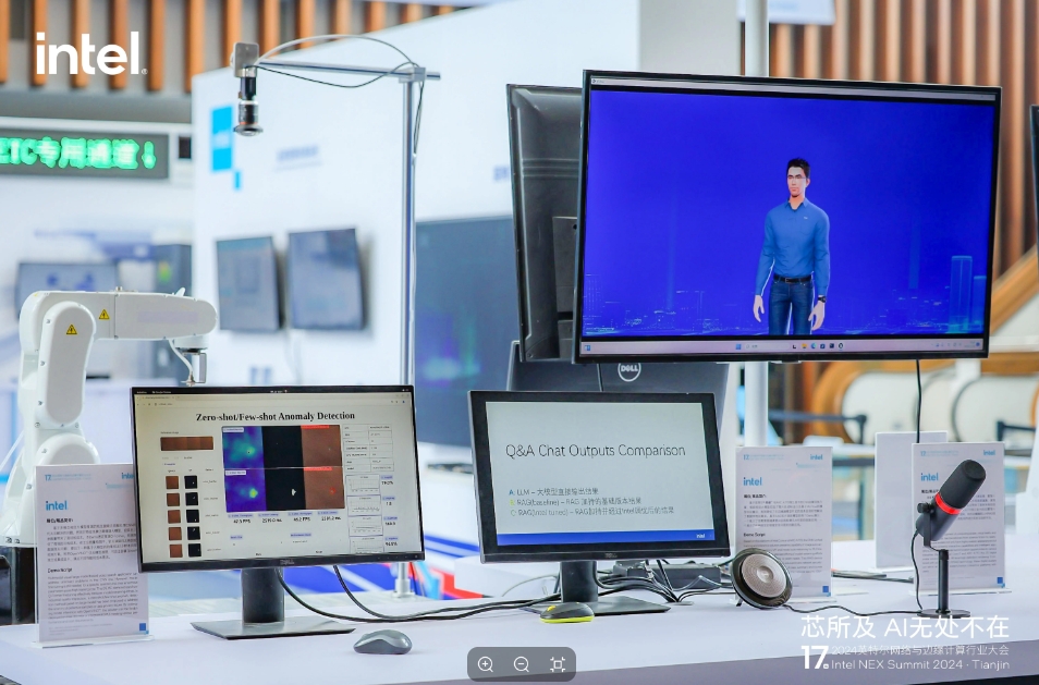 此次英特爾最新打造的3D虛擬數智人“小英”亦展出。展臺工作人員稱(chēng),“小英”同樣基于酷睿處理器、ARC770顯卡打造,完全部署于邊緣端,還在本地集成了大語(yǔ)言模型和RAG技術(shù)。據悉,其可以勝任營(yíng)業(yè)廳客服、商場(chǎng)導購、博物館講解員等角色。