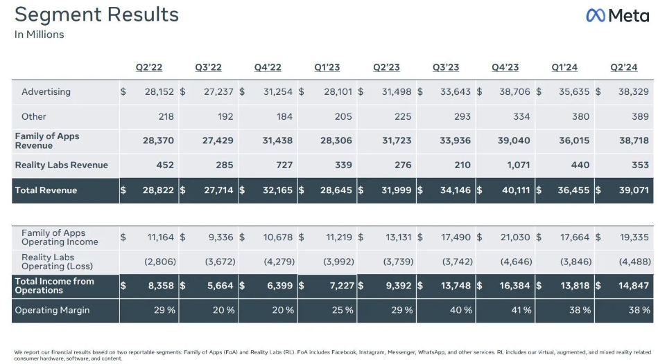7月31日周三美股盤(pán)后,“元宇宙平臺”、大舉押注AI的社交媒體與數字廣告巨頭Meta公布了2024財年第二季度財報。