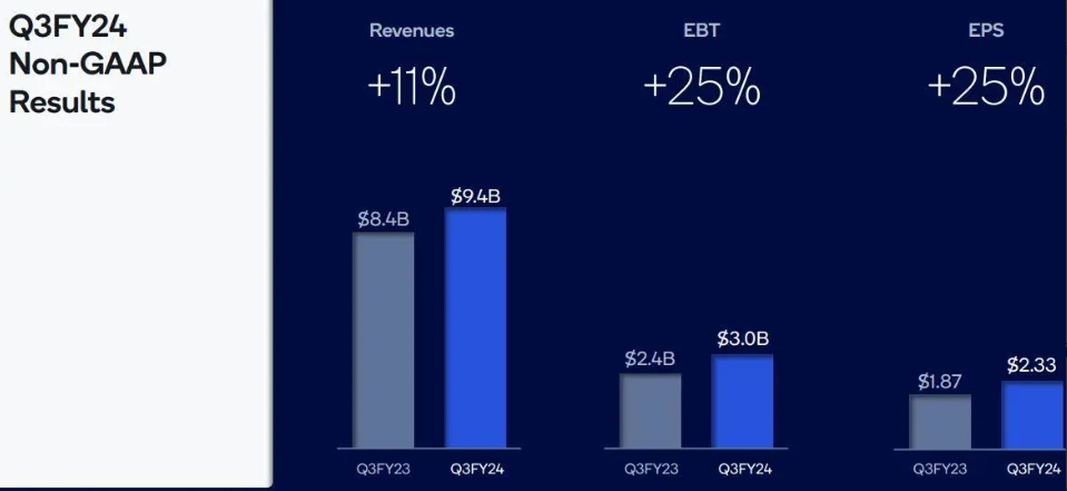 營(yíng)業(yè)收入:二季度非GAAP口徑下調整后營(yíng)收93.91億美元,同比增長(cháng)11%,分析師預期92.1億美元,一季度同比增長(cháng)1%。