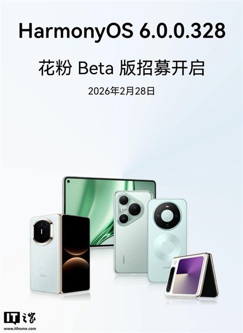 IT之家 3 月 1 日消息,華為鴻蒙 HarmonyOS 6.0.0.328 花粉 Beta 版昨日開(kāi)啟招募,首批機型覆蓋 Mate 80、Mate 70、Mate X7、Pura 80、Pura X、MatePad Pro 13.2 英寸 2025 等系列機型。