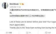 近日,特斯拉 CEO 埃隆·馬斯克發(fā)博稱(chēng):大量的特斯拉汽車(chē)將會(huì )在年底前交付,非常感謝各位對我們交付工作的支持,也同樣感謝在假期中