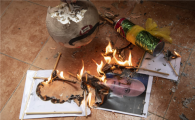 今年灑紅節(又稱(chēng)霍利節,也是印度傳統春節)前夜,10名男子手持紙板雕像,聚集在印度北部城市坎普爾的一家珠寶店外。這些紙板雕像有五英