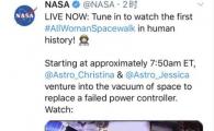 美國國家航空航天局(NASA)在 Twitter 上宣布,實(shí)現了首次全女性宇航員太空行走。本次太空行走由女性宇航員杰西卡·梅爾和女性宇航員