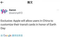 據 Aaron 消息,蘋(píng)果 Apple Pay 將在中國地區上線(xiàn)交通卡卡面圖案自定義活動(dòng),以此來(lái)紀念地球日。